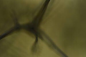 Und so transformieren diese Fotografien die visuelle Wirklichkeit von schlichten Ästen, Blättern, Blüten und Pilzen im urbanen Kontext in eine irrationale, geradezu unwirkliche Realität. Zurückgenommene, natürliche Farben unterstreichen diesen Eindruck.